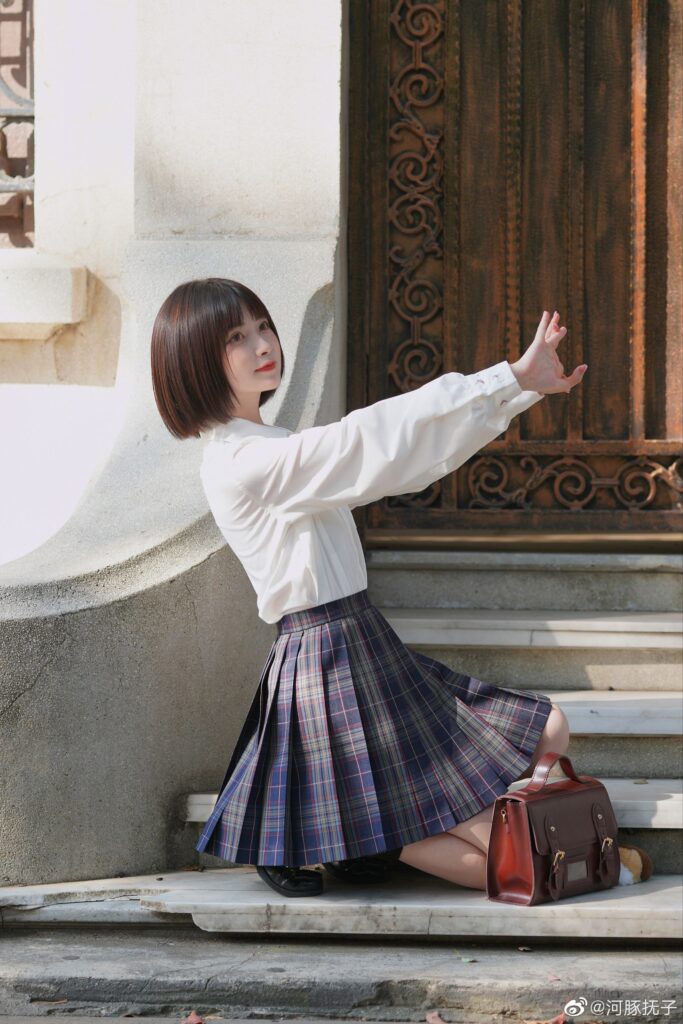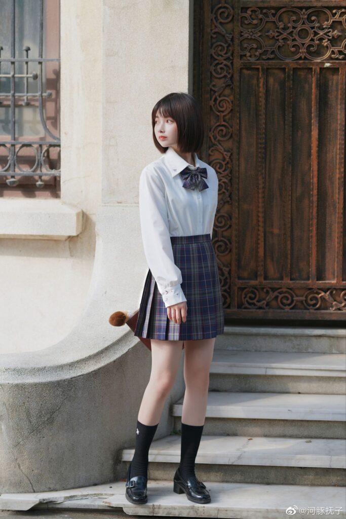 6L+Z5Liq5bCP5Lir5aS06Lqr56m/5LiA5Lu25riF5YeJ55qE55m96Imy57ya57uz5bCP6IOM5b+D77yM5LiA5p2h6JOd6Imy55+t54mb5LuU6KOk77yM5Zyo5rKZ5rup5Lit